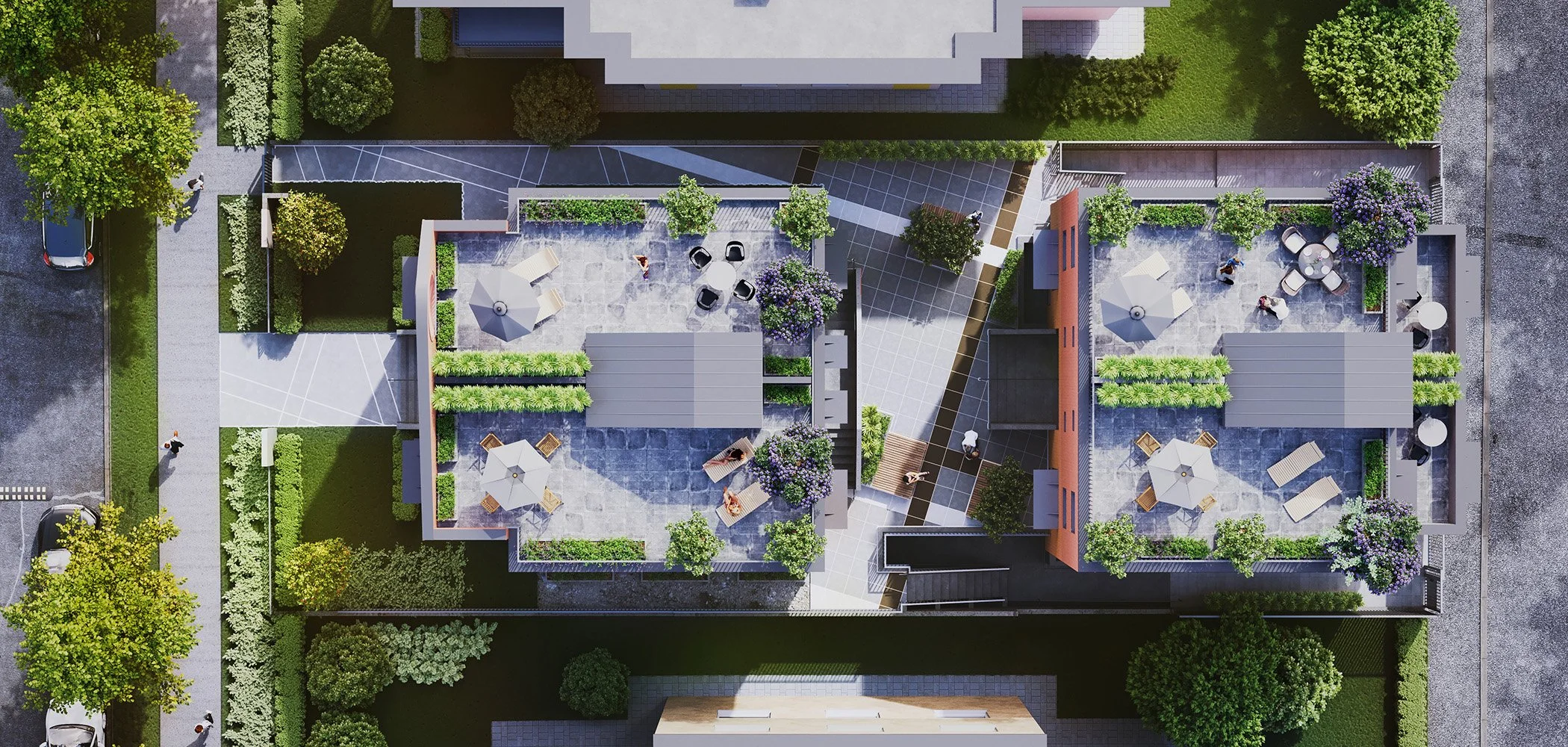 FROM ROOFTOPS TO COURTYARDS TO CURB APPEAL, CORAL DELIVERS THOUGHTFUL DESIGN AT EVERY TURN. HUGE ROOFTOP DECKS OFFER SPACE TO ENTERTAIN, GARDEN, OR SIMPLY SOAK UP THE SUN, WHILE THE CENTRAL COURTYARD CREATES AN OASIS FOR CONNECTION AND COMMUNITY